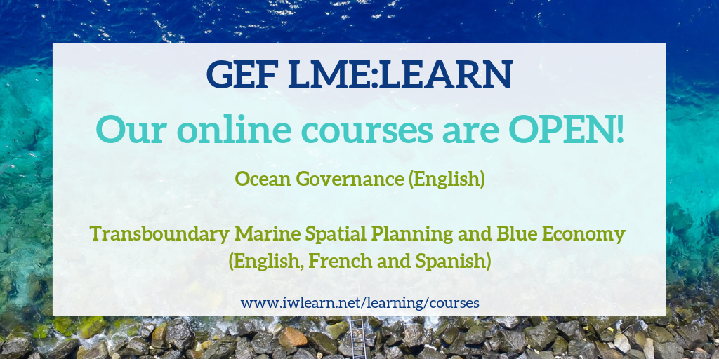 GEF LME: LEARN recently launched online courses on Ocean governance and transboundary Marine Spatial Planning and Sustainable Blue Economy. These courses are open to all interested participants who have no time to complete the modules. Each course is rich with compulsory readings, supplementary material, links to useful websites and quizzes. You may access the courses through the following links: