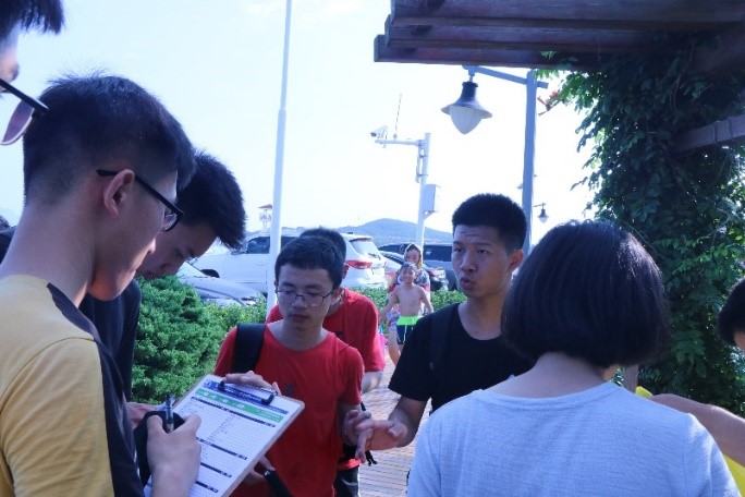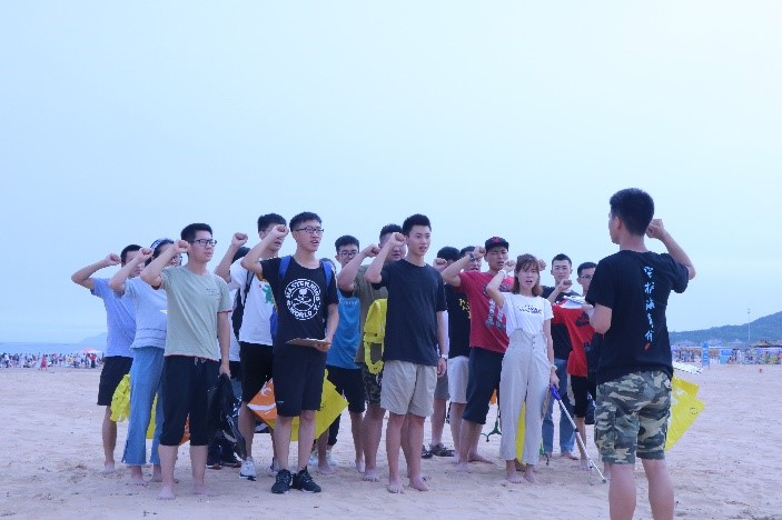 The monitoring was divided into three parts: preparation, beach cleaning and summarization. After the volunteers were gathered together, the organizer, Mr. Fang Junfei, a student of the China Petroleum University and focal point of the BlueRibbon Ocean Conservation Association (BROCA), introduced the steps of scientific research and beach cleaning, then distributed the beach cleaning tools, bags and garbage inventory forms. All the research members took an oath in a small ceremony with the waves of the sea as backdrop, and instilling a stronger sense of responsibility in them.